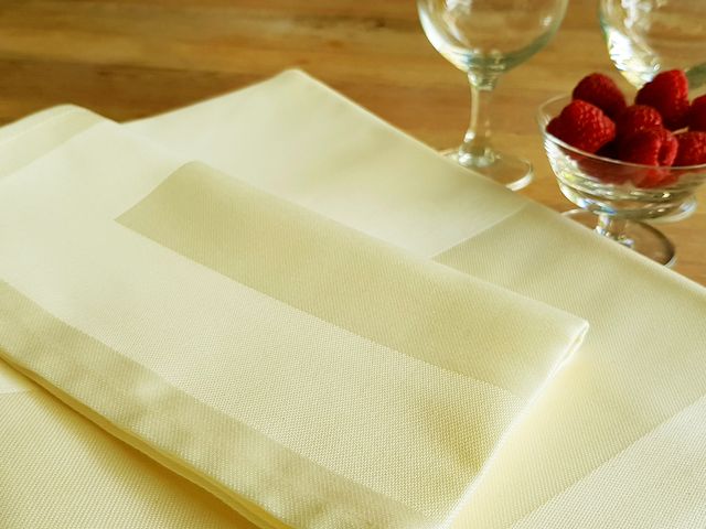 Folgende Pflegehinweise gelten für die Mitteldecke Padua mit Atlaskante in sekt 80x80cm: