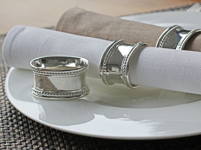 Für den Serviettenring Pisa empfehlen wir Leinen-Servietten in weiß oder farbig oder auch Damast-Servietten, die die Eleganz dieses Serviettenringes noch unterstreichen. Dieser Serviettenring eignet sich auch für eine Gravur.